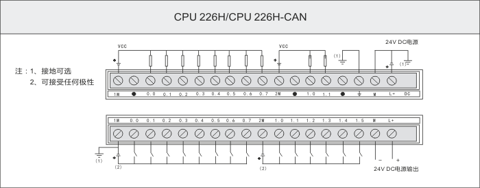 3、 此CPU數(shù)字量輸出點(diǎn)需外部負(fù)載需共陽接線(普通晶體管型CPU是外部負(fù)載共陰接線)。