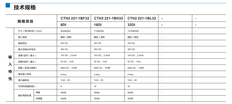 | 數(shù)字量輸入模塊, 16點輸入,24VDC | CTH2 221-1BH32 |