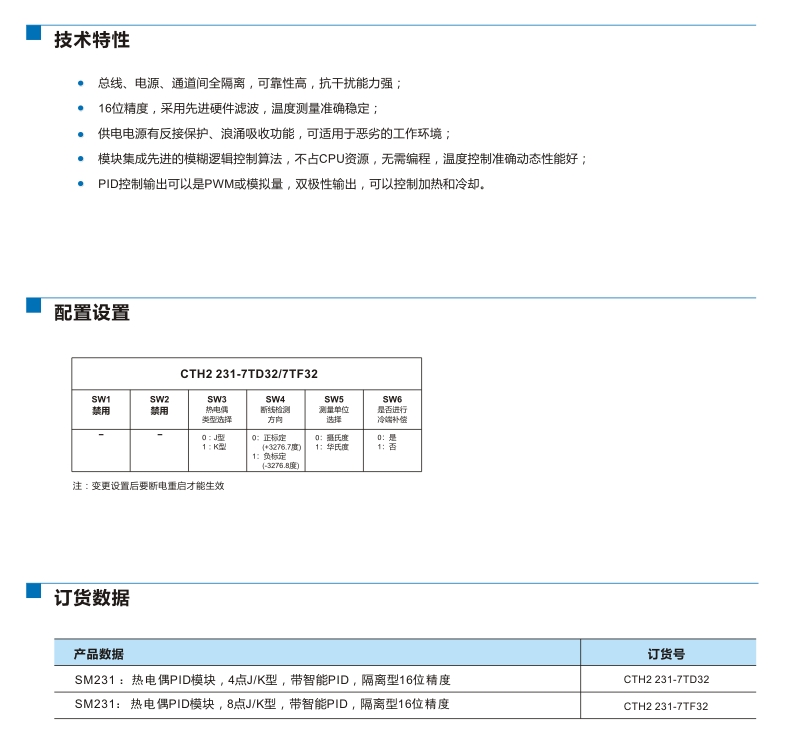 | SM 231 熱電偶PID模塊 | 熱電偶PID模塊,8點(diǎn)J/K型,帶智能PID,隔離型16位精度 | CTH2 231-7TF32 |