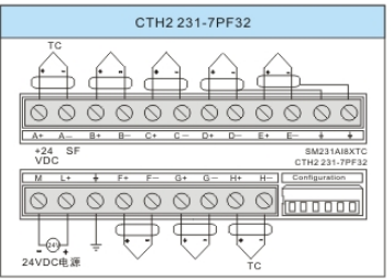 | 熱電偶溫度輸入模塊,8點TC,J/K/R/S/T/E/N,隔離型16位精度 | CTH2 231-7PF32 |